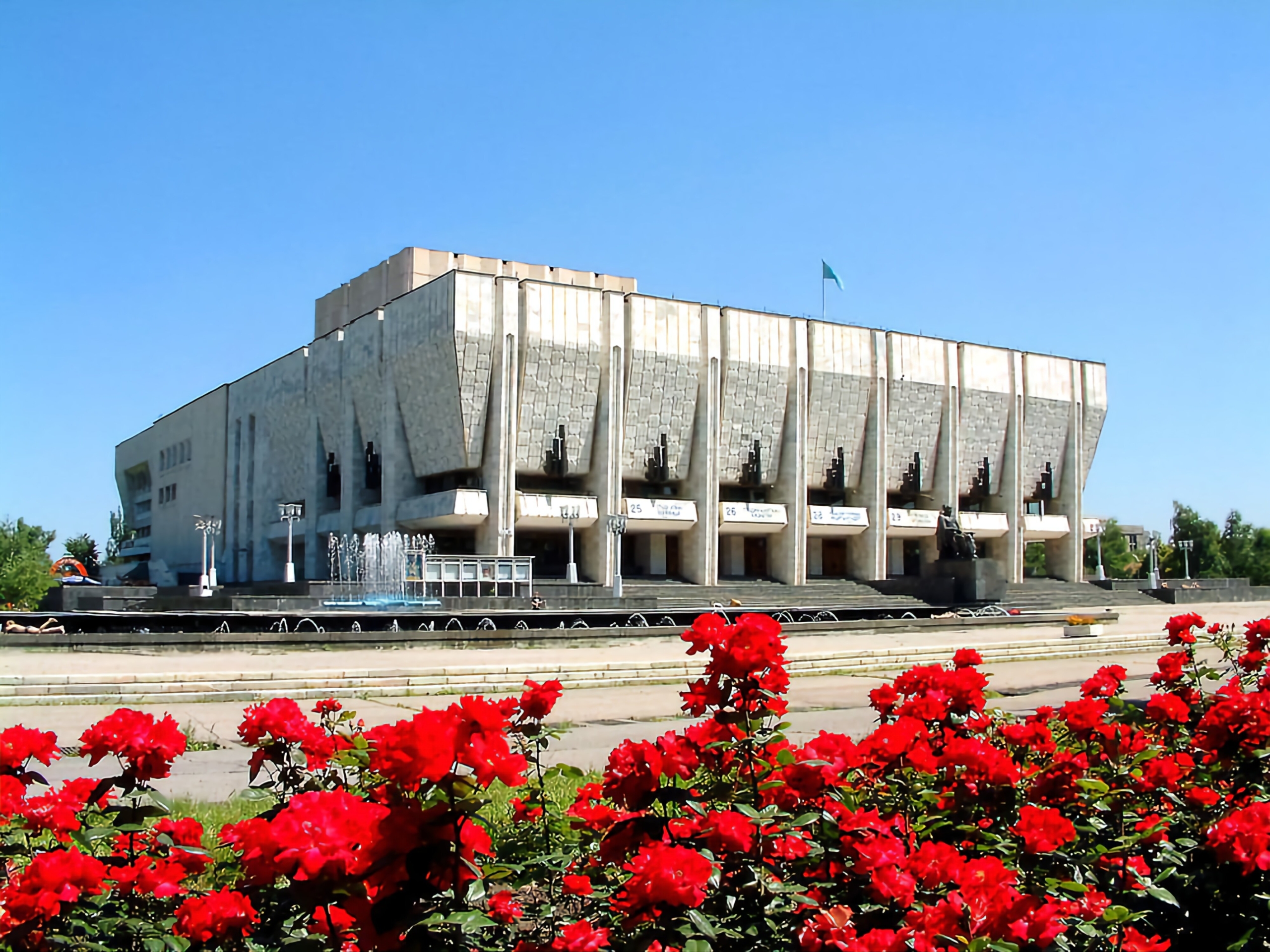 Драматический театр имени Мухтара Ауэзова в Алматы был построен в 1981 году. Его авторами стали архитекторы Ораз Баймурзаев, Асқар Кайнарбаев и Марат Жаксылыков. В 1982 году они получили Государственную премию КазССР за этот монументальный проект.